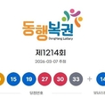 (조세금융신문=박청하 기자) 제1214회 로또복권 추첨에서 '10, 15, 19, 27, 30, 33'이 1등 당첨번호로 뽑혔다. 2등 보너스 번호는 '14'다. 7일 로또복권 운영사 동행복권에 따르면 당첨번호 6개를 모두 맞힌 1등 당첨자는 12명으로 24억3천158만원씩 받는다. 당첨번호 5개와 보너스 번호가 일치한 2등은 99명으로 각 4천912만원씩을, 당첨번호 5개를 맞힌 3등은 3천618명으로 134만원씩을 받는다. 당첨번호 4개를 맞힌 4등(고정 당첨금 5만원)은 17만7천889명, 당첨번호 3개가 일치한 5등(고정 당첨금 5천원)은 292만1천649명이다. [조세금융신문(tfmedia.co.kr), 무단전재 및 재배포 금지]