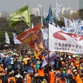 (조세금융신문=전한성 기자) 전국공무원노동조합(위원장 이충재)을 포함한 대한민국공무원노동조합총연맹, 전국교직원노동조합, 한국교원단체총연합회, 사학연금제도 개선을 위한 공동대책위원회 등 50여개 공무원단체가 함께 참여하는 '국민연금 강화! 공무원연금 개악저지! 총력투쟁 결의대회'가 28일 오후 2시 서울 여의도 문화마당에서 개최된 가운데 집회장에 각 연맹의 깃발이 입장하고 있다.