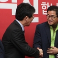 (조세금융신문=전한성 기자) 새누리당 원내지도부가 11일 오전 10시 서울 여의도 국회에서 공무원연금개혁특위위원 및 공무원단체 노조와 간담회를 가진 가운데 새누리당 유승민 원내대표가 이충재 전국공무원노조 위원장과 악수 나누고 있다.