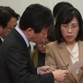 (조세금융신문=전한성 기자) 새누리당 원내지도부가 11일 오전 10시 서울 여의도 국회에서 공무원연금개혁특위위원 및 공무원단체 노조와 간담회를 가진 가운데 새누리당 유승민 원내대표와 김현숙 의원이 귀엣말을 나누고 있다.