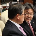 (조세금융신문=전한성 기자) 공무원연금개혁 특별위원회가 5일 오후 2시 서울 여의도 국회에서 열린 가운데 조원진(왼쪽, 새누리당), 강기정(새정치민주연합) 공동위원장이 귀엣말을 나누고 있다.오늘 위원회에선 공무원연금개혁 관계기관 추가업무보고 및 질의답변과 향후 전체회의 및 분과위원회 운영에 관한 건에 대해 논의가 있을 예정이다.